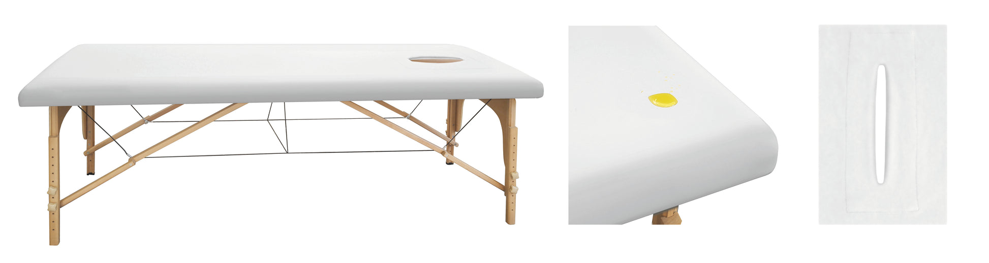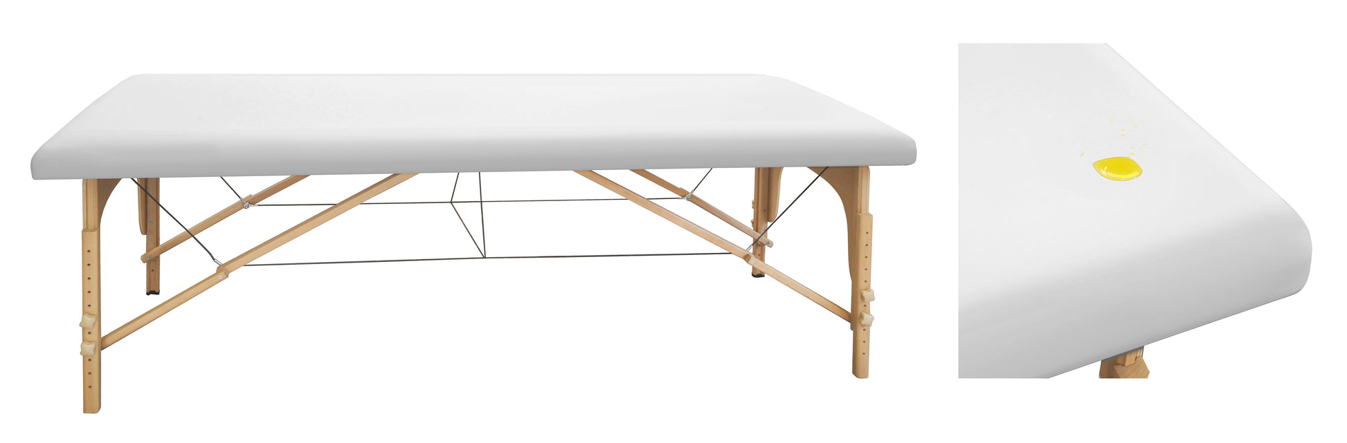 40% Polyester / 60% Polyurethan, mit Rundum-Gummi, öl- und wasserundurchlässig, waschbar bei 95°C (ohne Weichspüler)