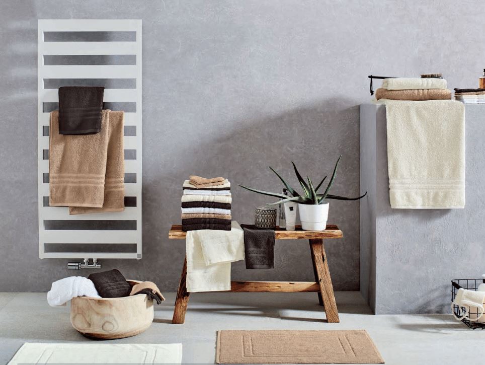 ²), mit eleganter 3-Streifen-Webbordüre (Badvorleger und 30 x 50 cm 2 Streifen, 16 x 21 cm und 30 x 30 cm 1 Streifen), 4-seitig gesäumt, farbig waschbar bei 60°C, weiß waschbar bei 95°C, trocknergeeignet